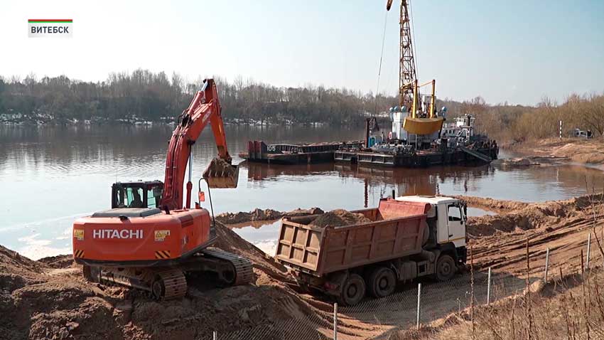Мы стараемся максимально сработать здесь, в районе Витебска. А потом уже, когда начинает падать вода, мы тогда уходим выше Витебской гидростанции и спускаемся от Бешенкович до Полоцкой гидростанции. Планируем безвозвратные выемки песка около 500 тысяч тонн. И этот же объем мы реализуем предприятием города Витебска и Витебской области. В основном это поставщики такие, как: ДСК, Жилстрой, «ПлиссаСтрой» и все дорожные организации.