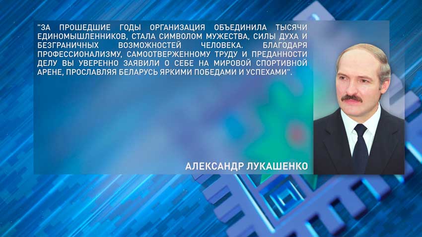 «За прошедшие годы организация объединила тысячи единомышленников, стала символом мужества, силы духа и безграничных возможностей человека. Благодаря профессионализму, самоотверженному труду и преданности делу вы уверенно заявили о себе на мировой спортивной арене, прославляя Беларусь яркими победами и успехами», – говорится в поздравлении.