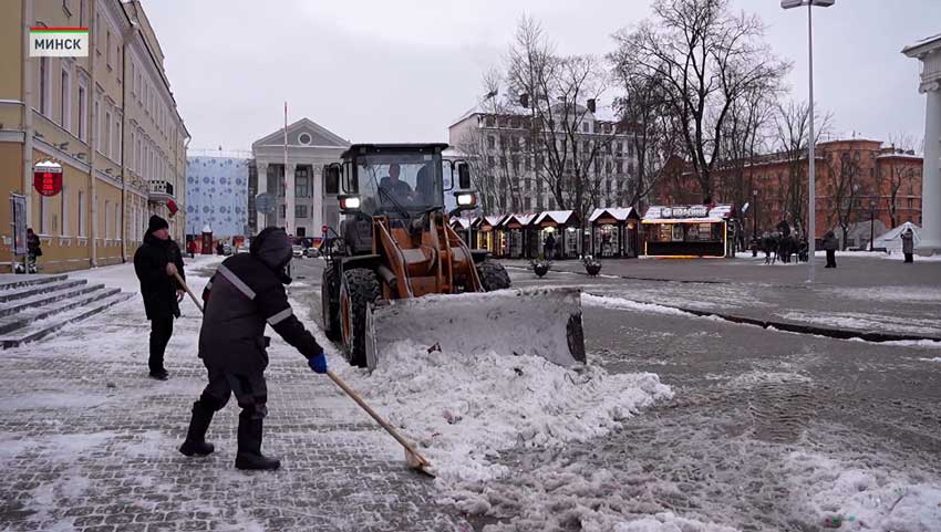 Но вот если у граждан утренняя зарядка на свежем воздухе началась только с утра, то вот коммунальные службы по всей Беларуси спасали страну от снега в режиме нон-стоп. На трассах и улицах городов целый парад спец-техники. А в качестве снежной пехоты тысячи работников ЖКХ.