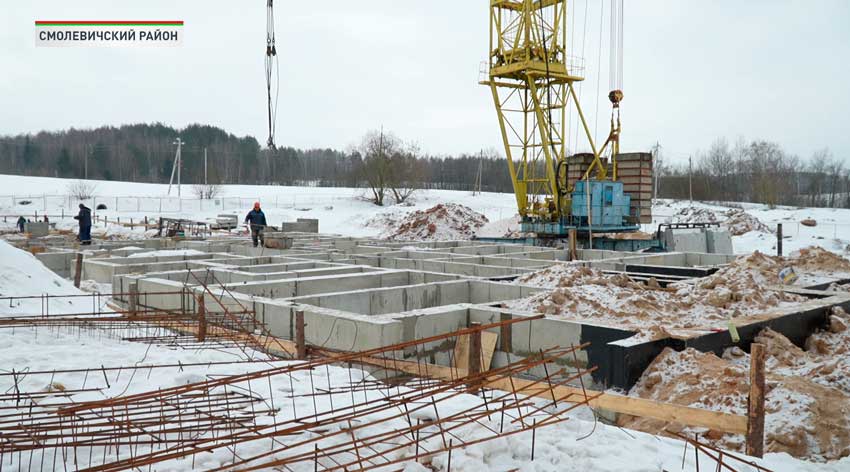 В Смолевичском районе реализуют масштабную программу. В поселке Усяж, возводят жилой дом на 48 квартир. Общая площадь – три тысячи квадратных метров. Сейчас на площадке ведут работы по заливке фундамента. Сдать дом планируют к концу года.